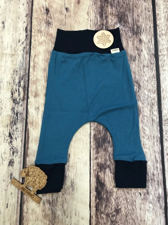 Rostoucí zimní MERINO harémky Lambio - Petrolej/tm.modrý lem