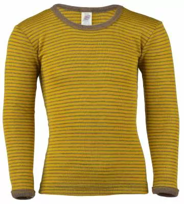 Tričko Engel s dlouhým rukávem z merino vlny s hedvábím - Šafrán s proužky.