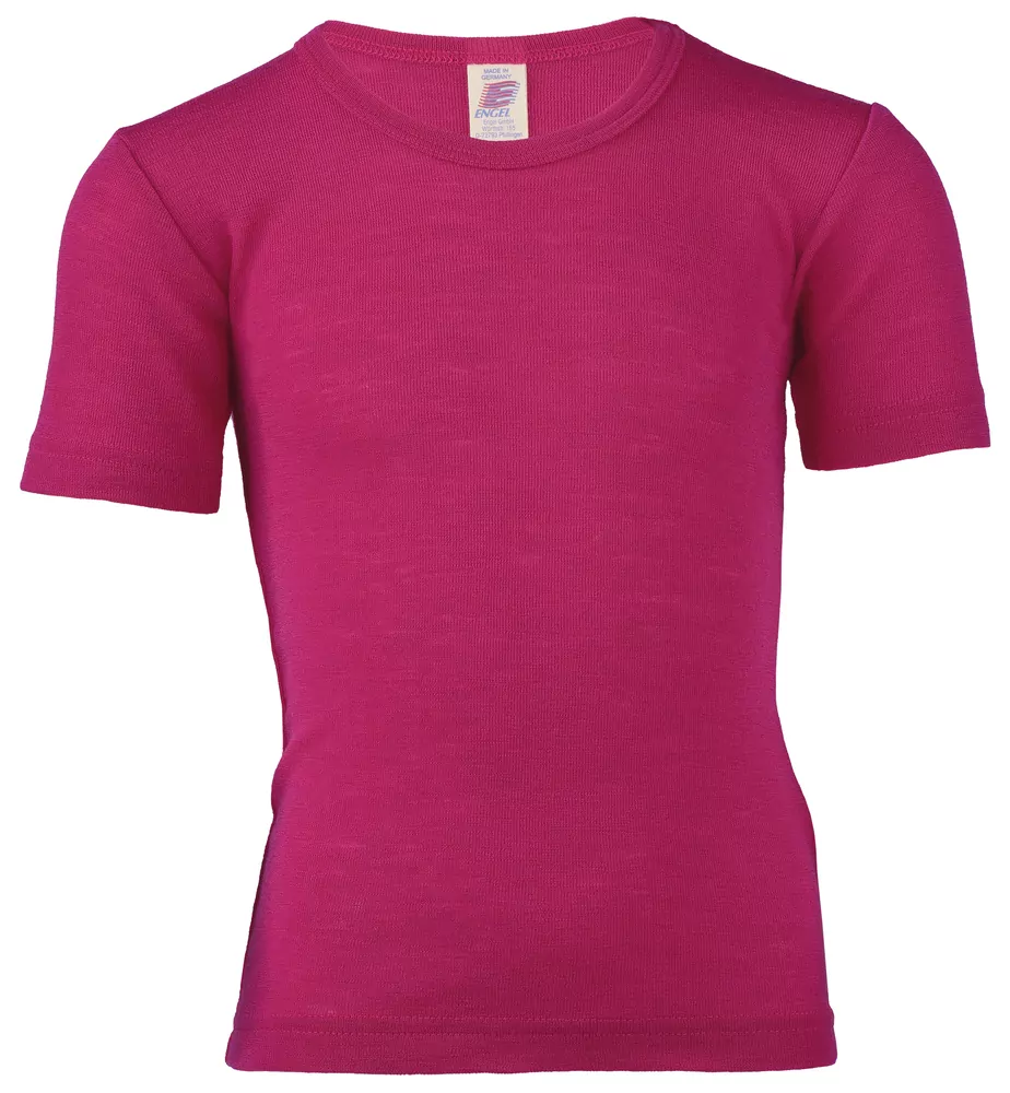 Tričko Engel s krátkým rukávem z merino vlny s hedvábím - Malina.