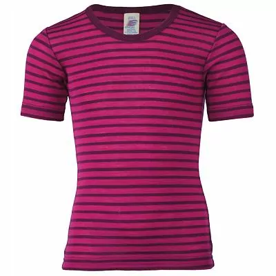 Tričko Engel s krátkým rukávem z merino vlny s hedvábím - Orchidej/malina proužky.