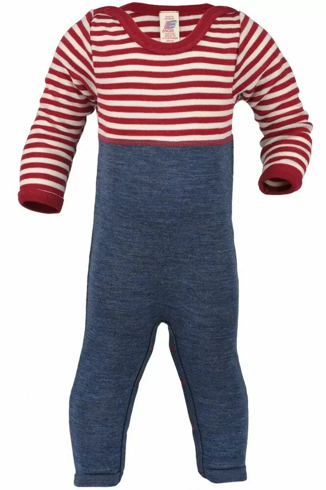 Overal Engel s dlouhým rukávem ze 100% merino vlny - červený proužek/modrá.