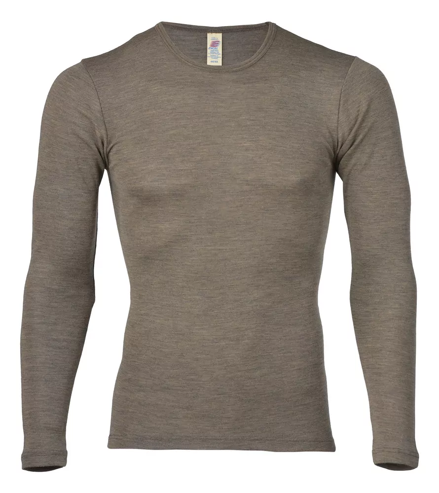 Pánské tričko Engel s dlouhým rukávem z merino vlny s hedvábím - oříškové.