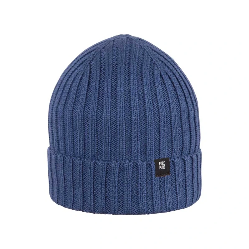 Bavlněná pletená čepice Pure Pure - Dark Denim. Tato stylová pletená čepice je upletena výhradně z certifikované bio bavlny (GOTS) a nabízí široký ohrnovací lem v žebrovaném vzoru pro dokonalé přilnutí a optimální tepelnou izolaci. Elegantní detail představuje dekorativní štítek s typickým brandinge... celý popis