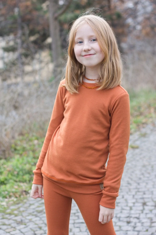 Celoroční junior merino tričko ZM Basic se spodním lemem, dlouhý rukáv - Zrzavé žebro.