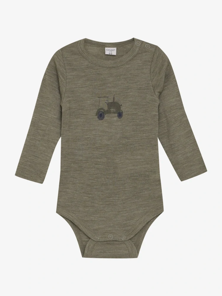 Merino body s dlouhým rukávem CeLaVi - Žebro - Traktor/dusky green