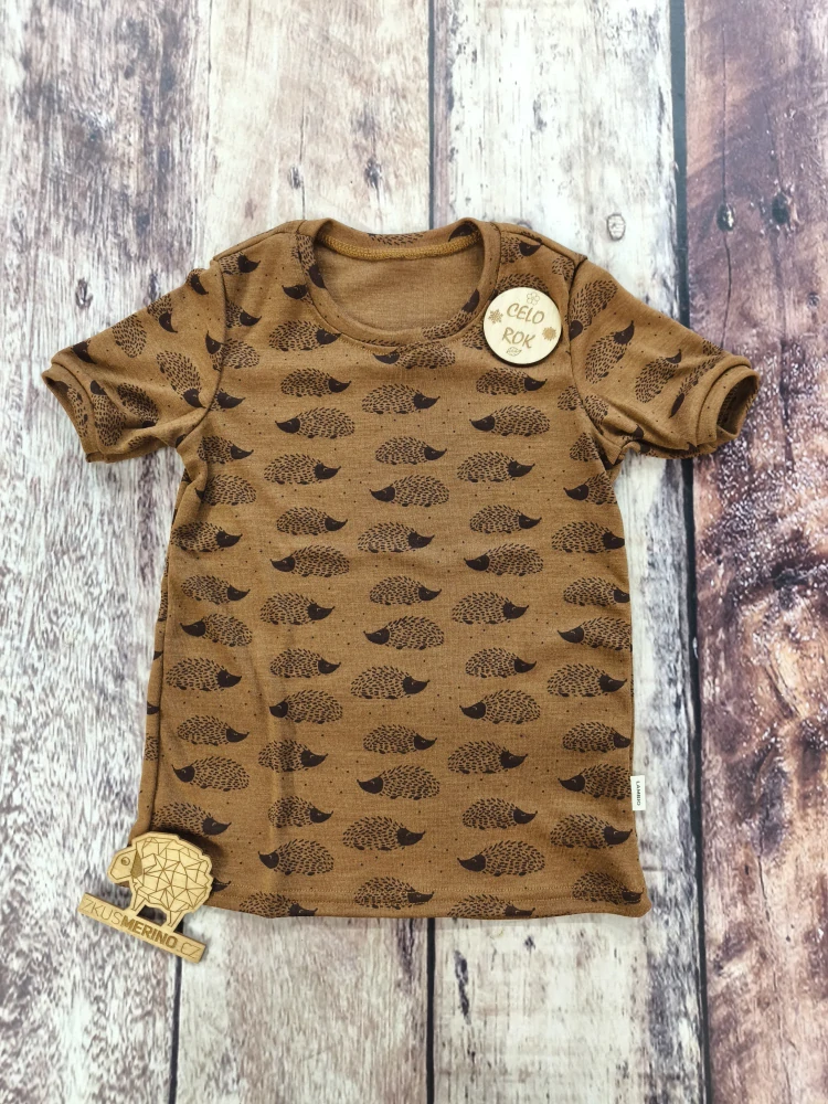 Merino/hedvábí tričko s krátkým rukávem - Ježci skořicoví.