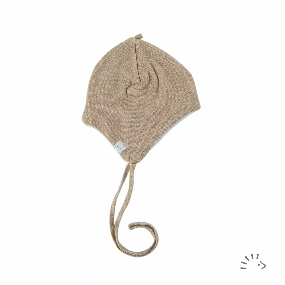 Čepice na zavazování pro batolata z kombinace bavlny a merino vlny. Čepička kryje perfektně ouška a hlídá tak děťátku tepelný komfort.
