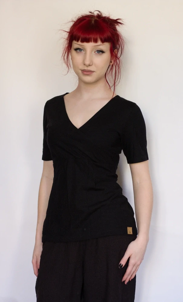 Dámské letní tričko s křížením a krátkým rukávem ZM Basic - Černé.