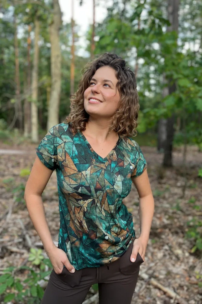 - Dámské merino tričko Paterns V, krátký rukáv - Green Gorpcore