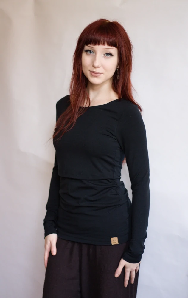 Dámské zimní MERINO kojící tričko ZM Basic, DR - Černé.
