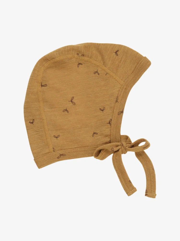 Dětská tenká zavazovací merino/hedvábí čepice FIXONI - Brown Sugar.