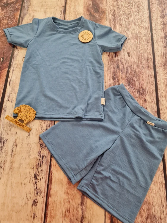 - Dětský letní merino/lycra komplet/pyžamo Lambio, KR - Holubí modř