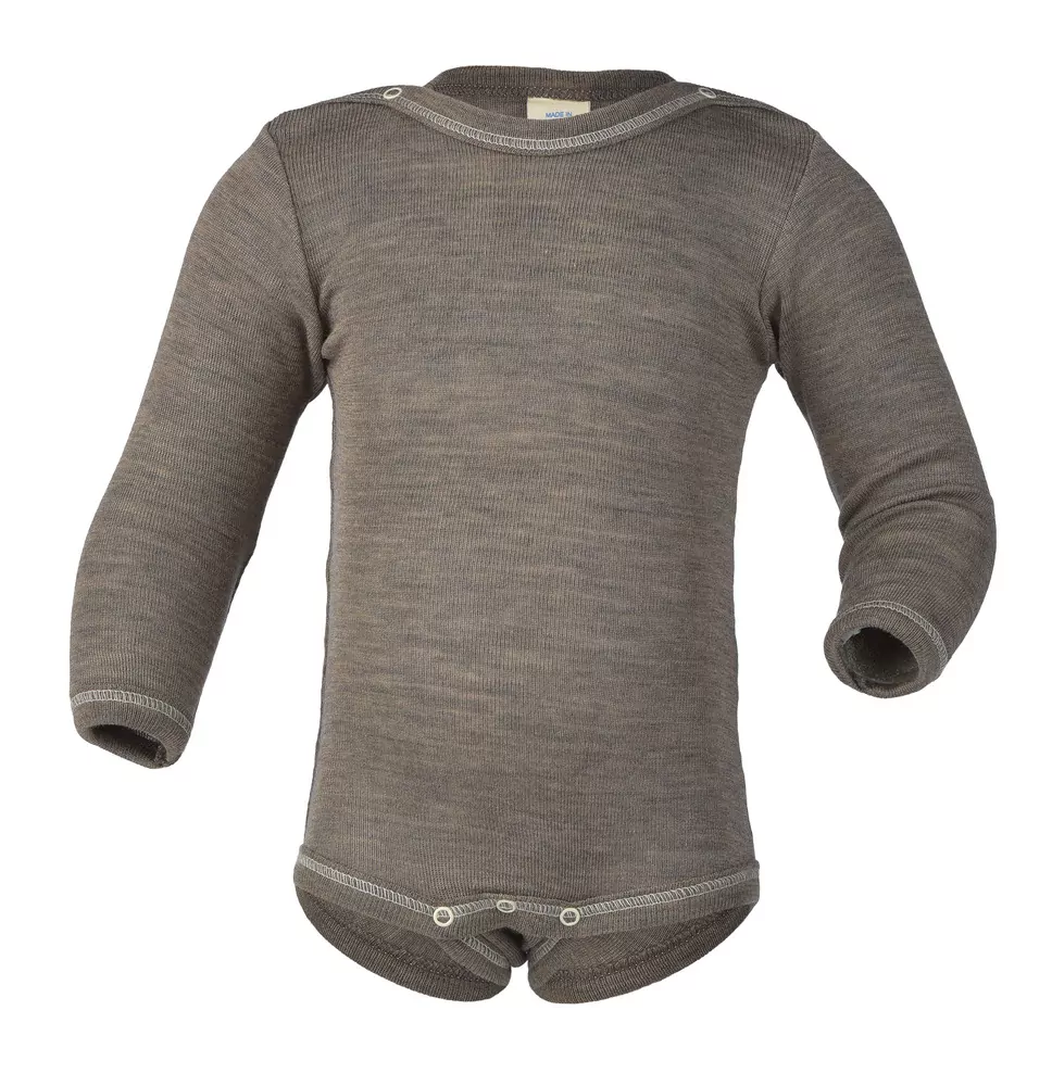 Kojenecké body Engel s dlouhým rukávem z kombinace merino vlny a hedvábí - Oříšek.