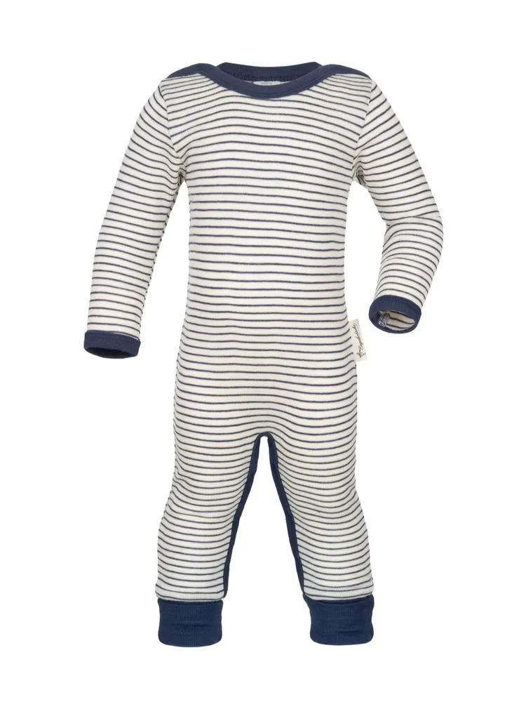 Overal Engel s dlouhým rukávem z kombinace merino/hedvábí - Natural/navy.