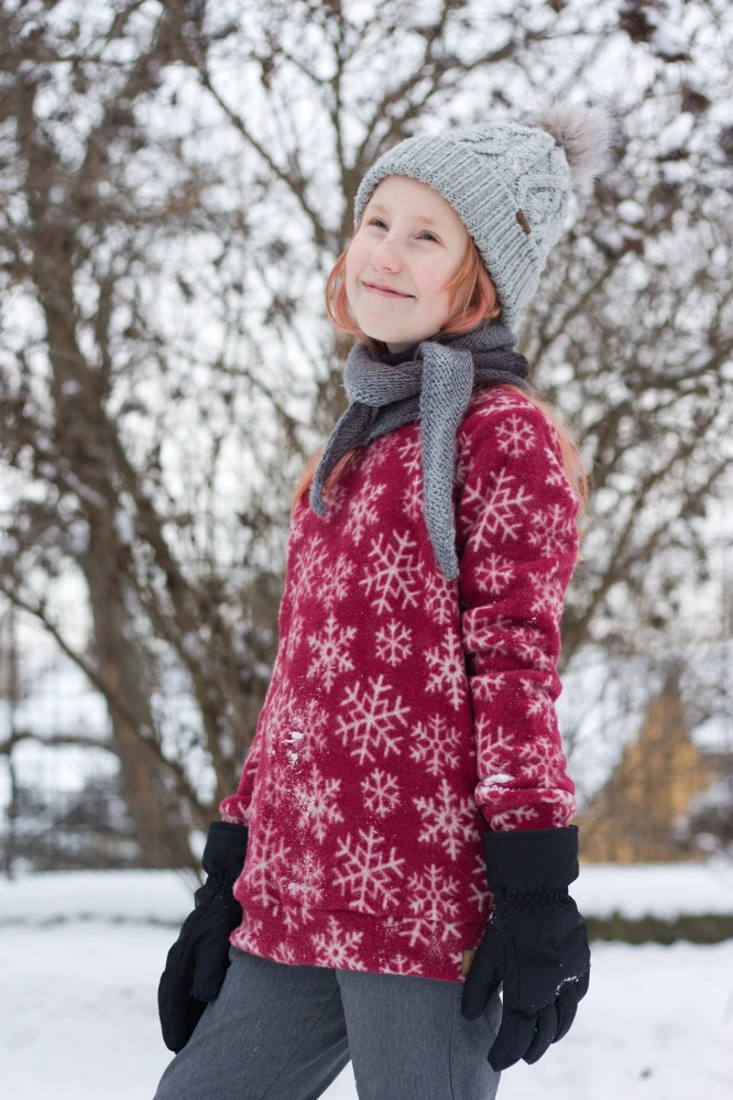 Naše zimní mikina má u krku vysoký stojáček, který zajistí, že budou mít děti tuto choulostivou oblast opravdu v teple.