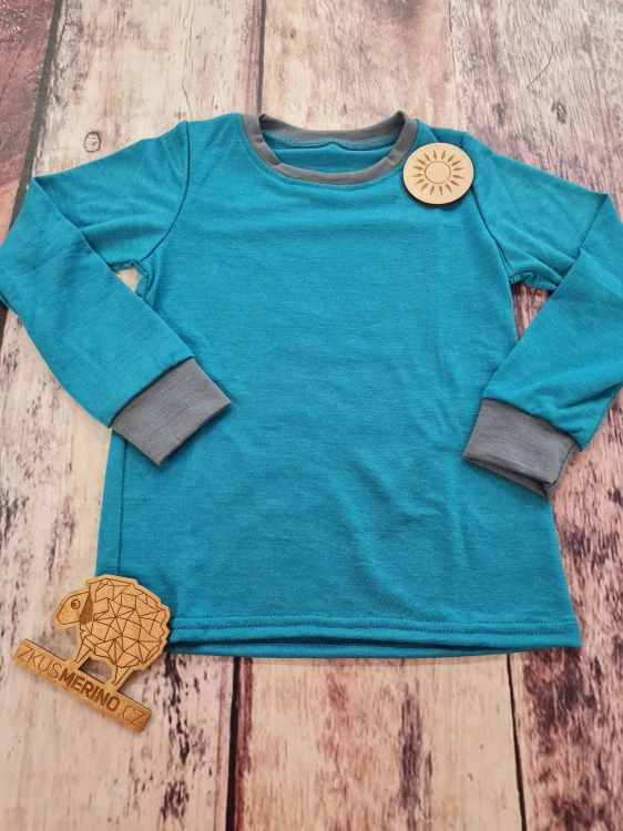 Merino tričko s dlouhým rukávem - Petrol/šedý lem.
