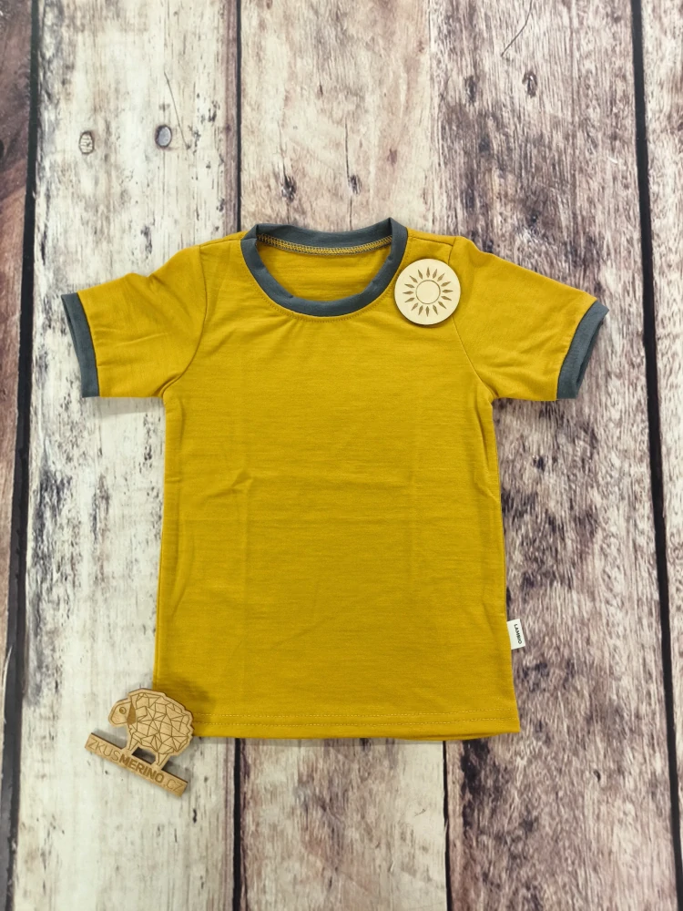 Merino tričko s krátkým rukávem - Kari/šedý lem. Lehké a vzdušné tričko, které si vy i vaše děťátko prostě zamilujete. Triko je skvělé na samostatné nošení, i jako spodní vrstva. Materiál je tenký a extra pružný, a přitom velmi trvanlivý.   Naše merino tričko je skvělé na celodenní n... celý popis