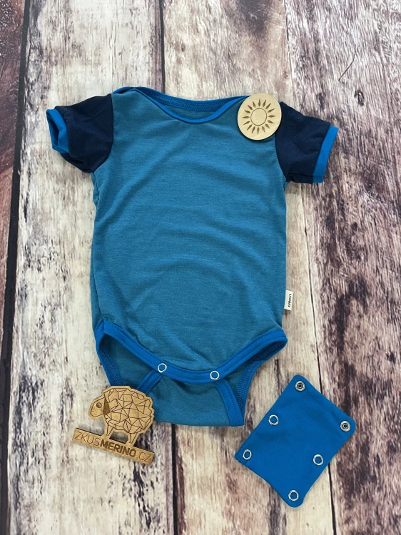Rostoucí merino body s krátkým rukávem - Petrol/modrý rukáv.