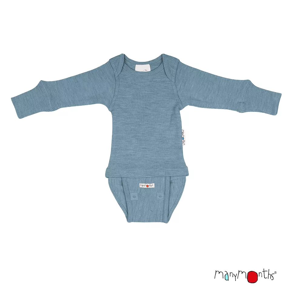 Merino body/tričko ManyMonths s dlouhým rukávem - Blue Mist.