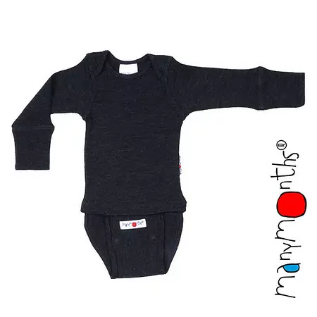 Merino body/tričko ManyMonths s dlouhým rukávem - Foggy Black.