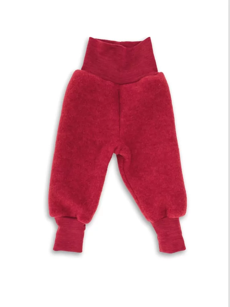 Dětské merino fleece kalhoty Engel s vysokým pasem - Červená jaspis.