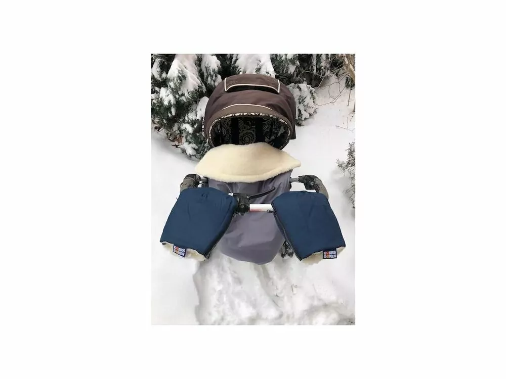 Tmavě modré rukavice na kočárek s merino vlnou.