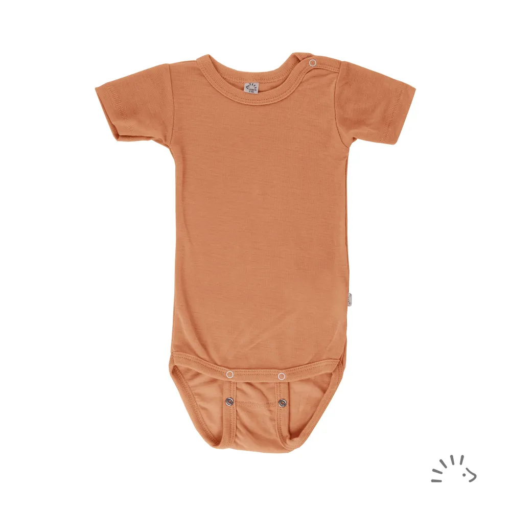 Merino/hedvábí body IoBio, kr. rukáv - Cinnamon
