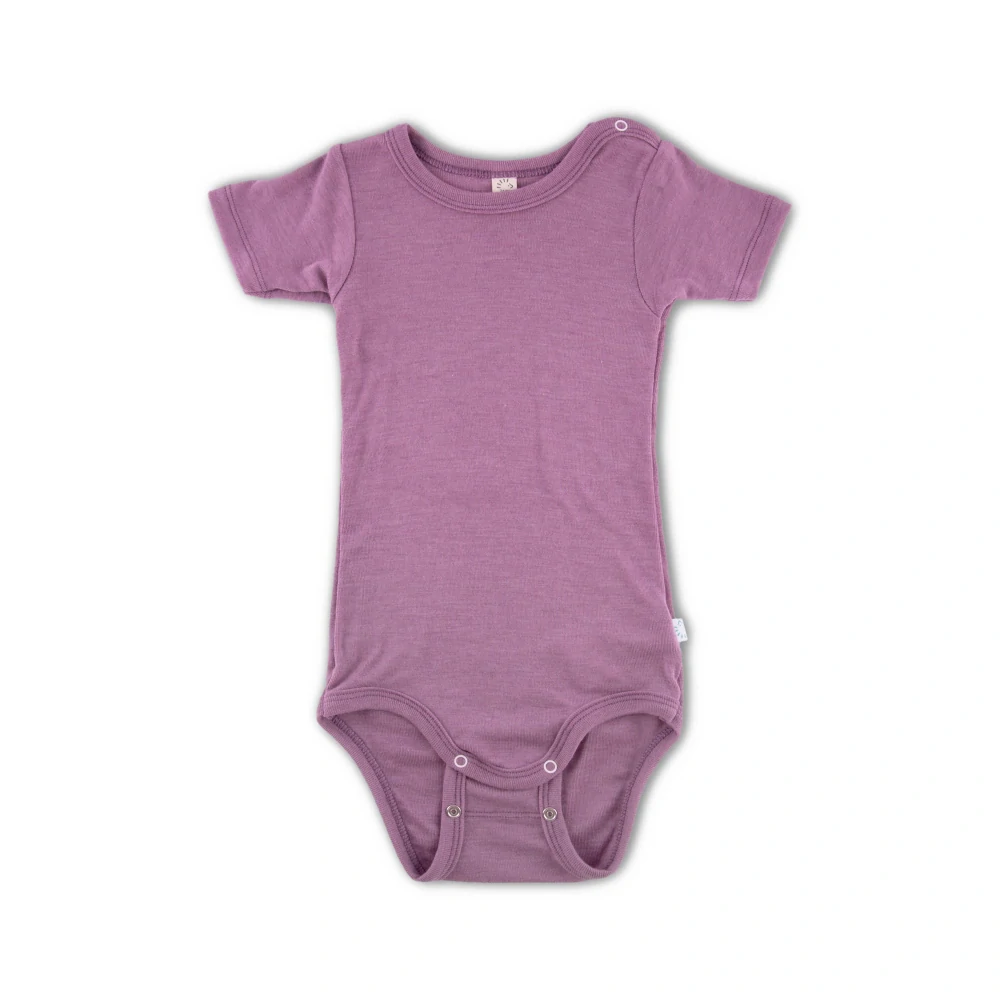Dětské body Iobio z kombinace merino vlny a hedvábí - krátký rukáv - Mauve (fialková).