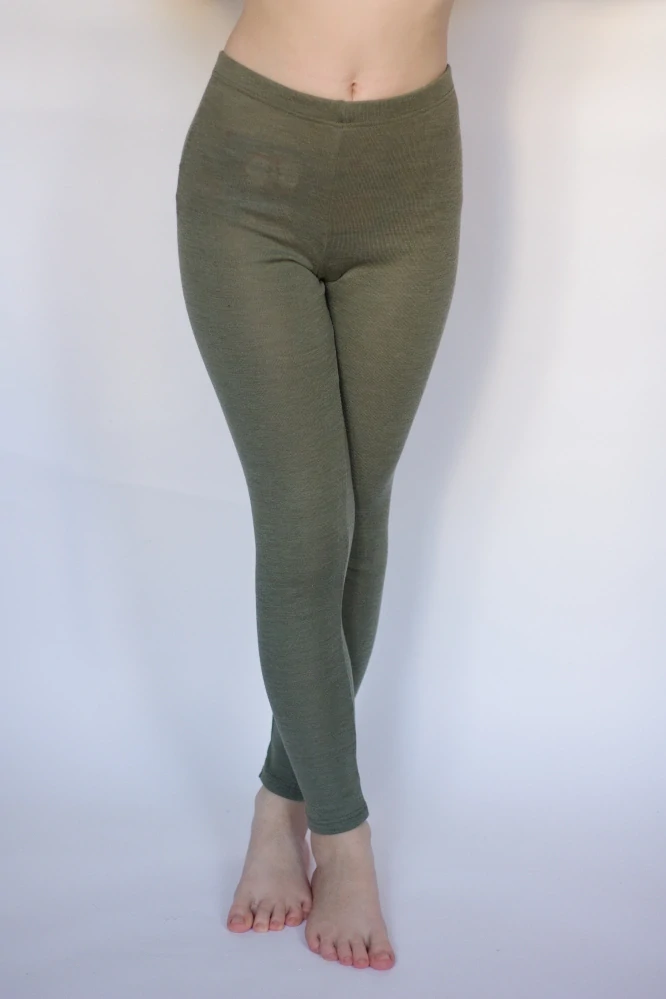 Merino/hedvábí junior legíny Engel - Oliva