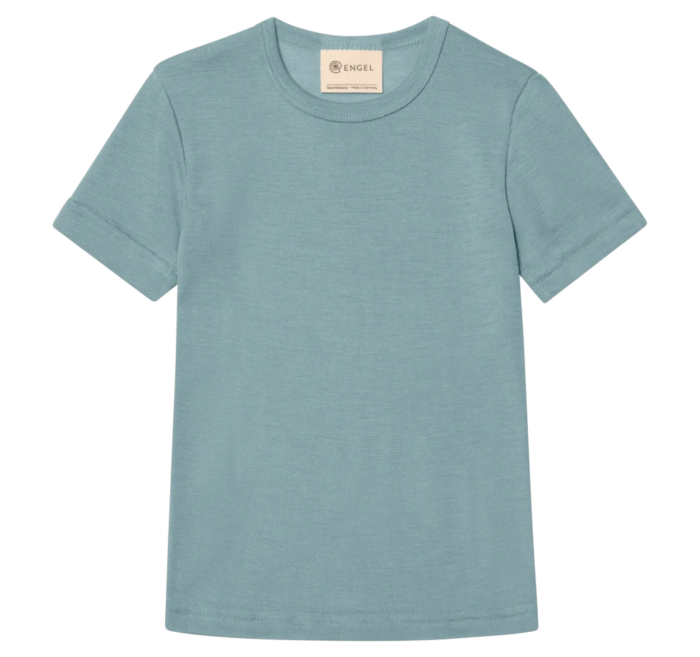 Junior Tričko Engel s krátkým rukávem z merino vlny s hedvábím - Kouřově modré.