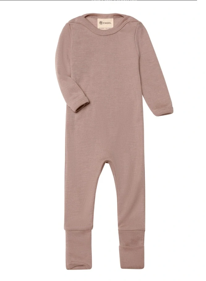 Overal Engel s dlouhým rukávem z kombinace merino/hedvábí - Dusty rose.