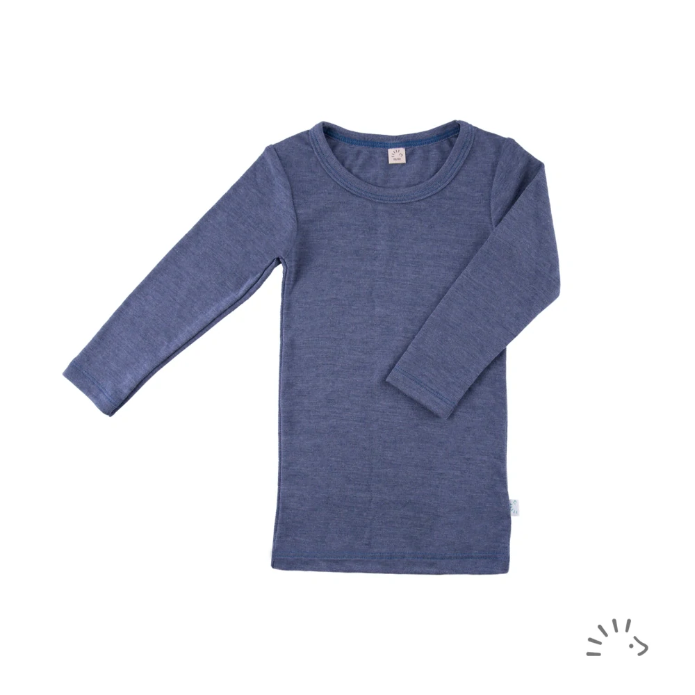 Dětské tričko Iobio z kombinace merino vlny a hedvábí - dlouhý rukáv - Oceán melanž.