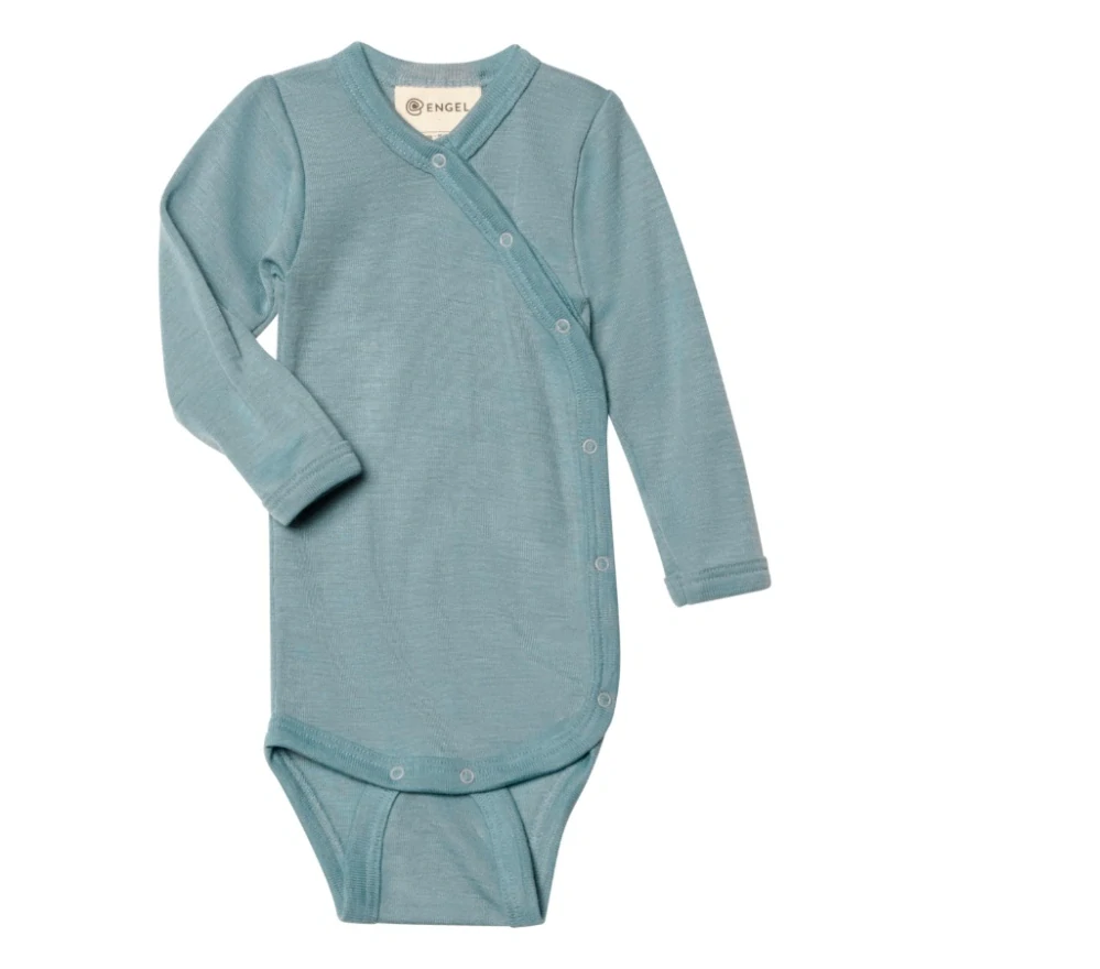 Kojenecké ZAVINOVACÍ body Engel s dlouhým rukávem z kombinace merino vlny a hedvábí - Kouřově modré.