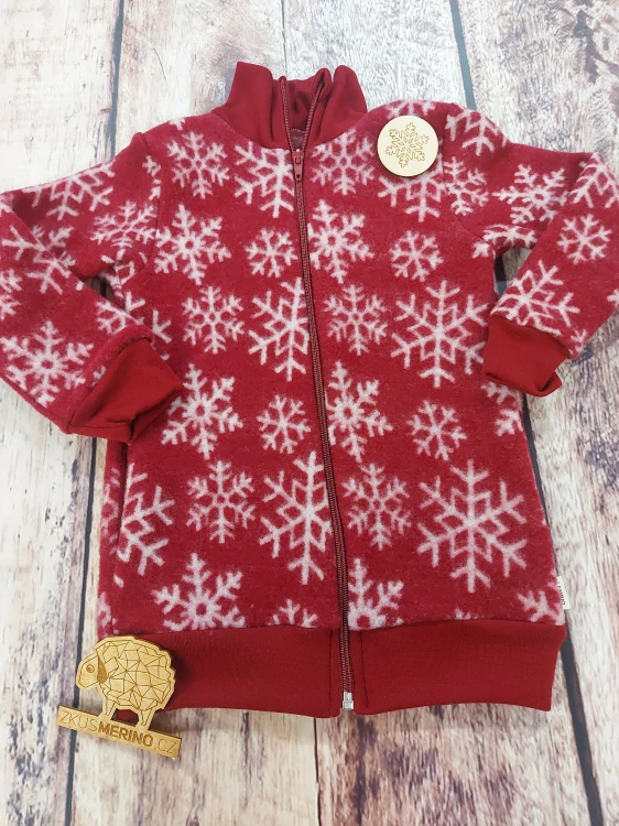 Mikina merino fleece se stojáčkem na zip - Bordo vločka