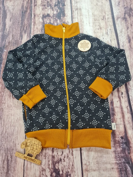 Mikina ze špičkového finského merina na zip - Polárka antracit/hořcice. Představujeme vám exkluzivní merino mikinu-  absolutní "must have" letošního roku, která kombinuje jednovrstvý materiál z té nejvyšší kvality s gramaží 210 g. Toto prvotřídní finské merino je vyráběné jako "mulesing free" a pyšn... celý popis