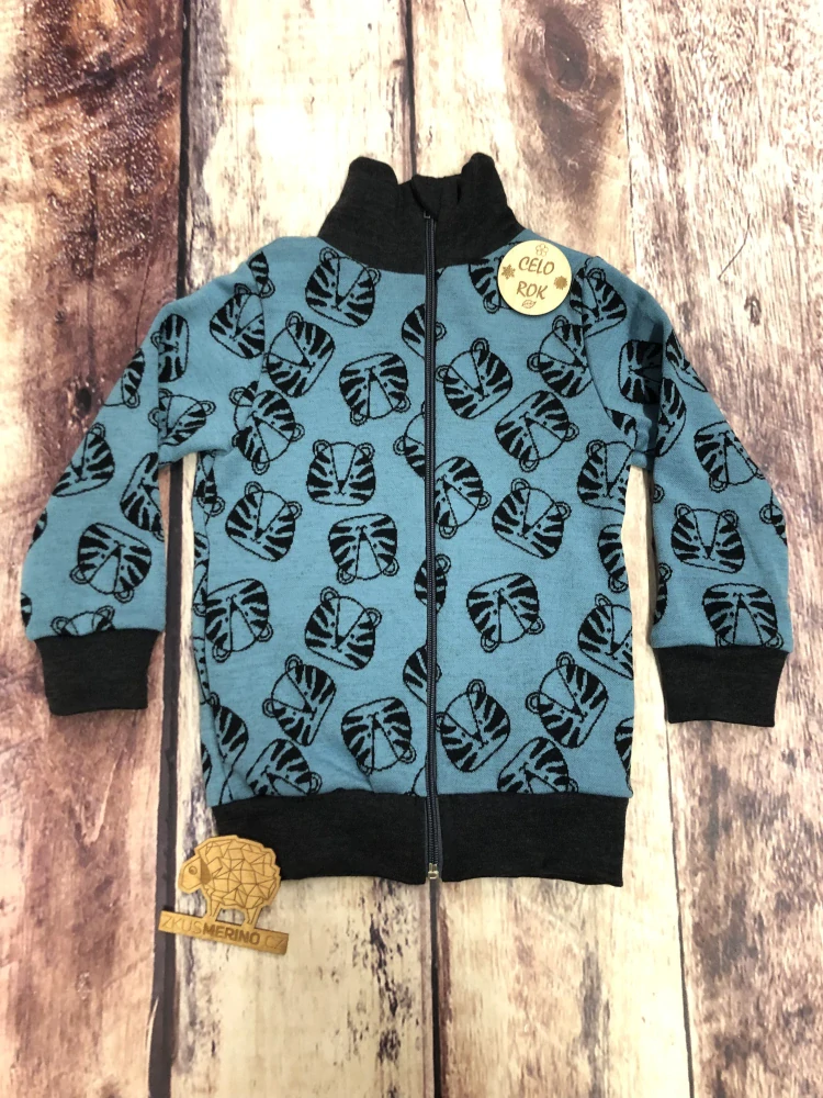 Mikina merino jaro/podzim se stojáčkem na zip Lambio - Tygři mořská zelenáPoslední kus skladem1 253 Kč/ ks1 036 Kč bez DPH