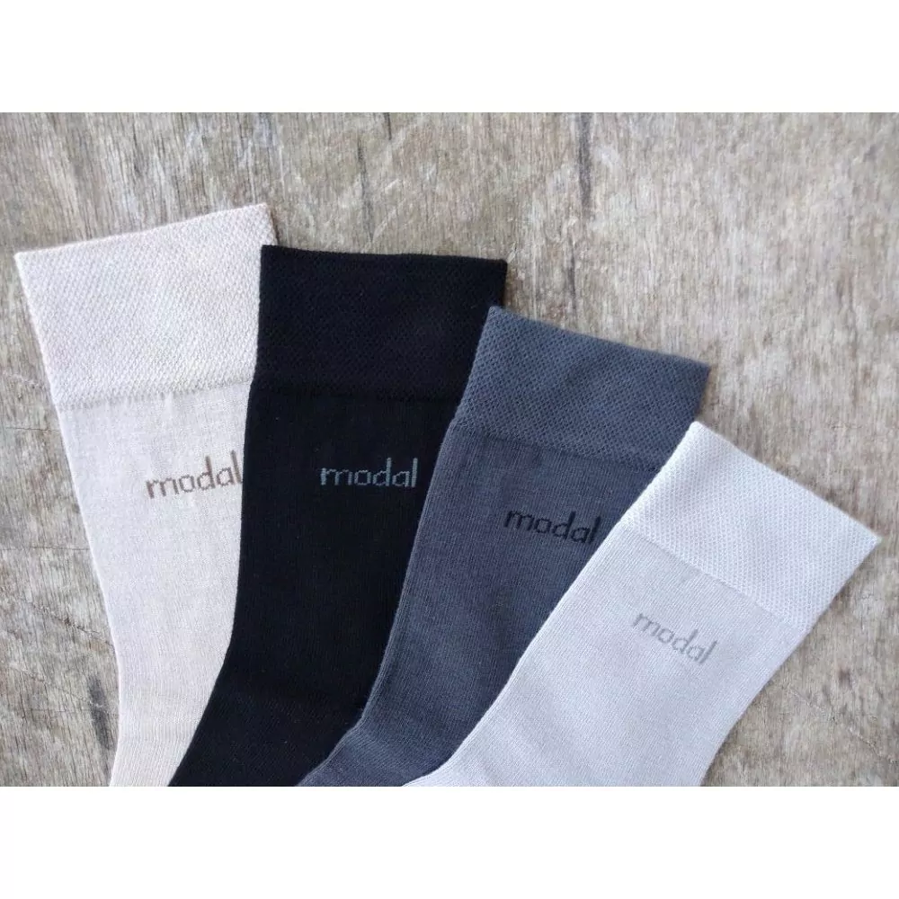 Modal je celulozové vlákno vyrobené z bukového dřeva s vysokou pevností a zvýšeným odvodem vlhkosti. Modalová vlákna mají skvělou absorpci, větší sytost barev a lesk zůstává i po více praních. Špice je řetízkovaná, pata a špice zesílená. V lýtku pod lemem nápis MODAL.