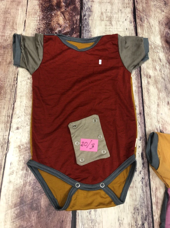 Zbrusu nový vylepšený střih s patentkami u krku. Naše letní body se díky tomu dobře obléká, a zároveň nehrozí rozevírání výstřihu. Bodýčko je šité tak, že je vhodné jak pro látkové, tak i jednorázové plenky.