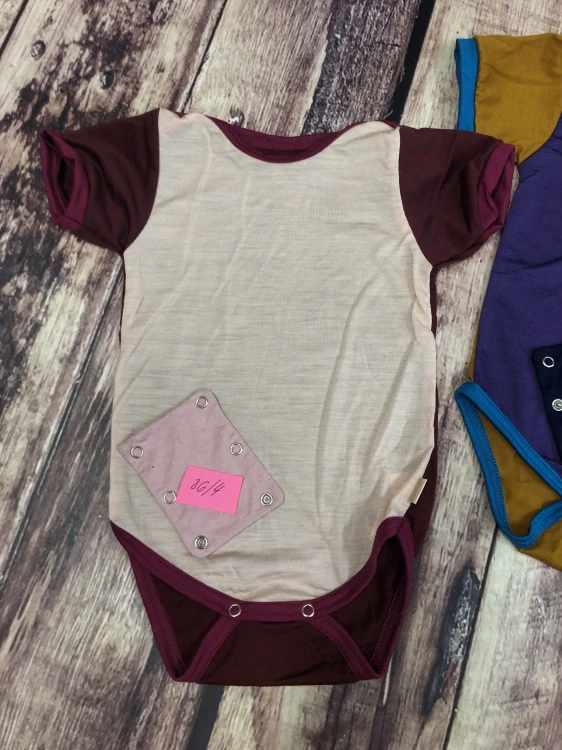 Zbrusu nový vylepšený střih s patentkami u krku. Naše letní body se díky tomu dobře obléká, a zároveň nehrozí rozevírání výstřihu. Bodýčko je šité tak, že je vhodné jak pro látkové, tak i jednorázové plenky.