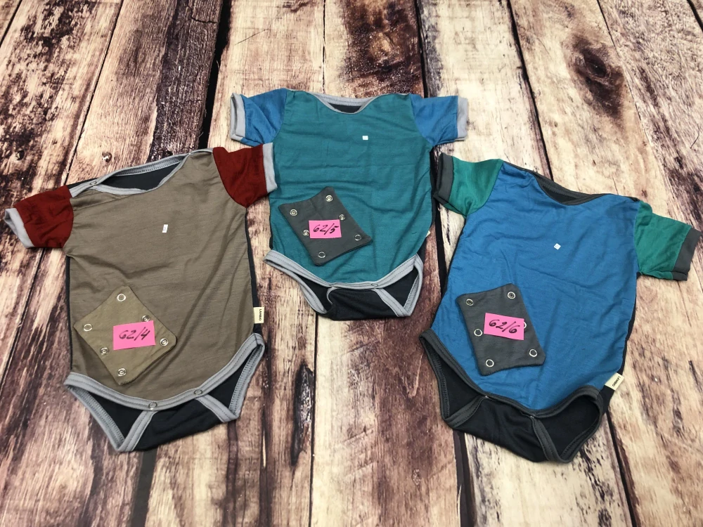 Zbrusu nový vylepšený střih s patentkami u krku. Naše letní body se díky tomu dobře obléká, a zároveň nehrozí rozevírání výstřihu. Bodýčko je šité tak, že je vhodné jak pro látkové, tak i jednorázové plenky.