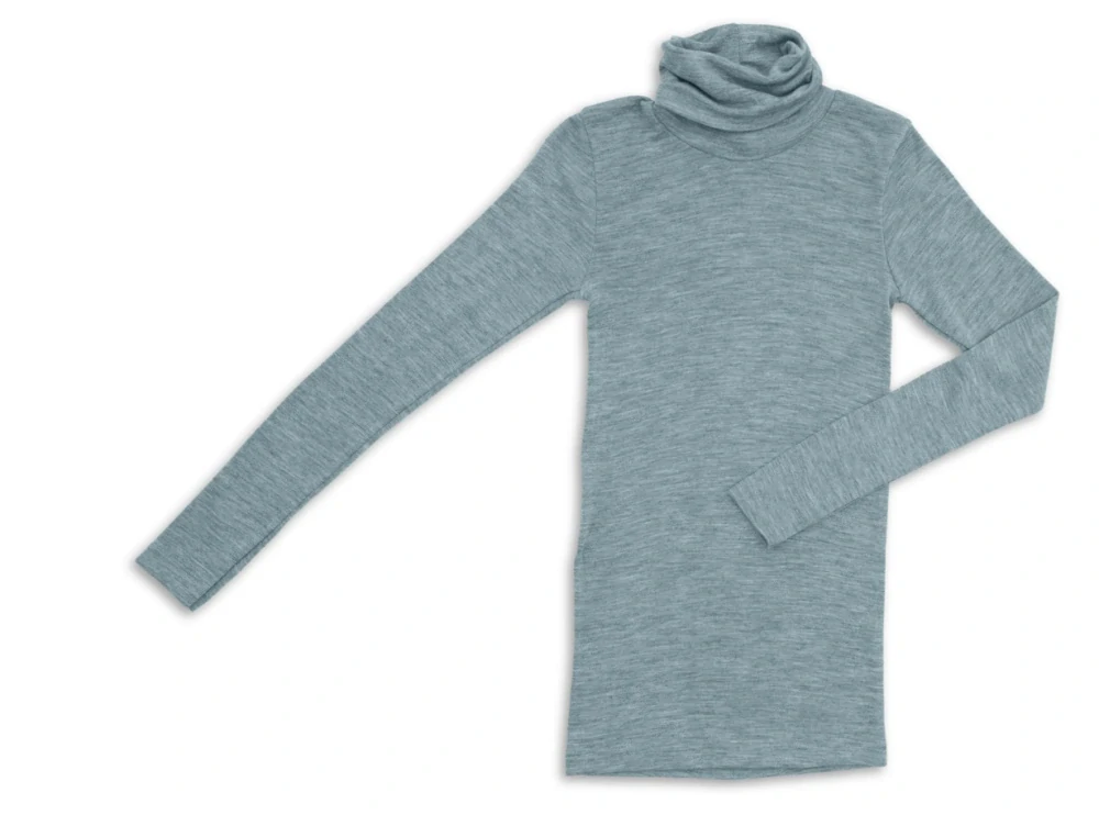 Dámský rolák Engel z kombinace merino vlny s hedvábím - šedomodré.
