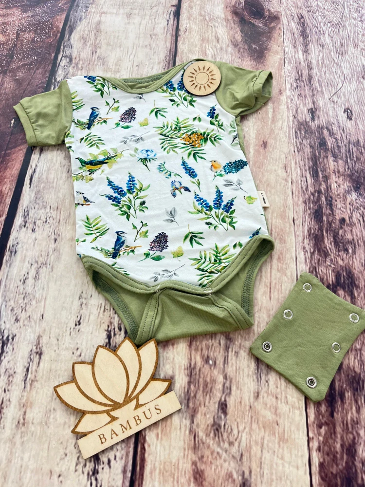 Rostoucí bambusové body Lambio, KR - Luční ptáčci/mechově zelenáskladem370 Kč/ ks306 Kč bez DPH