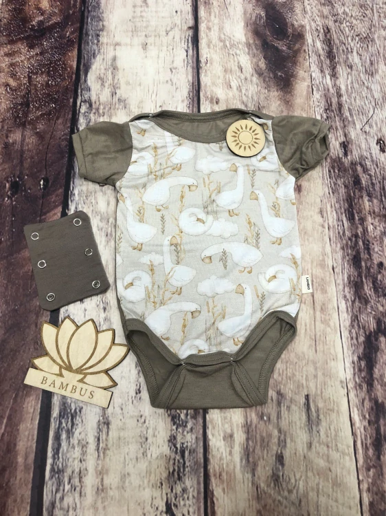 Rostoucí bambusové body Lambio, kr.rukáv - Husy/cappuccino