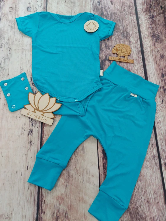 Bambusový komplet - body s krátkým rukávem a harémky - Azur*.