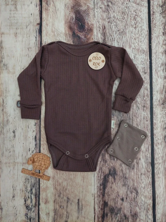 Rostoucí celoroční MERINO body Lambio, DR - Kávové žebro.