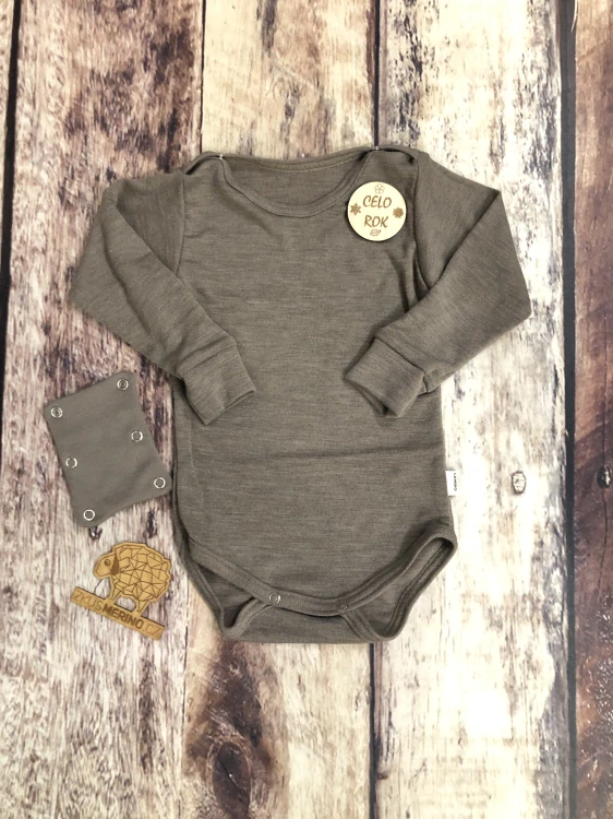 Rostoucí celoroční MERINO body Lambio, DR - Oříšek.