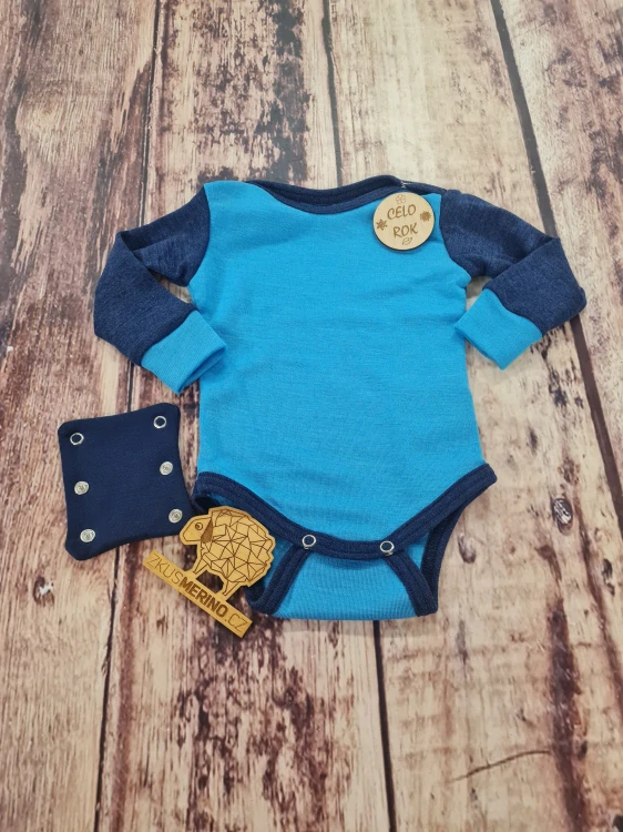 Rostoucí celoroční MERINO body Lambio, DR - Tyrkys/navy.
