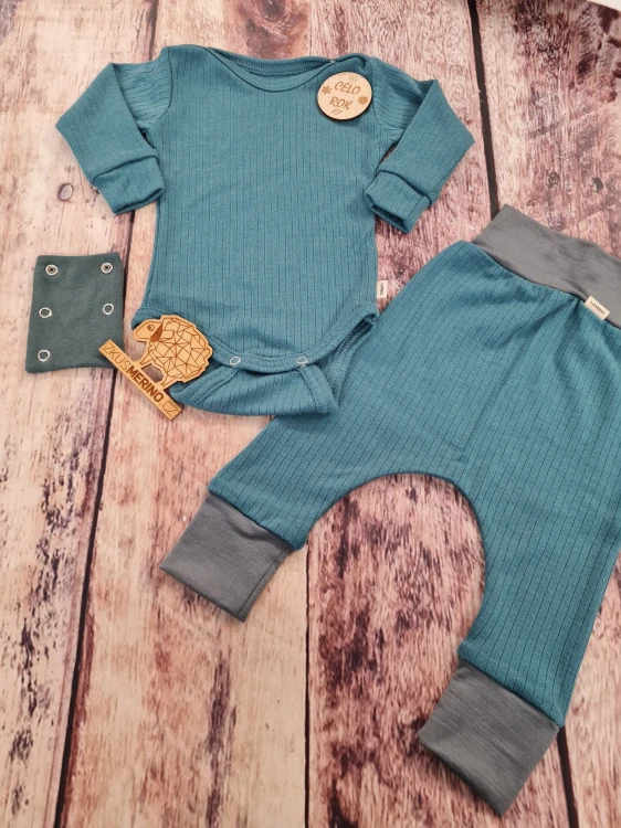 Rostoucí celoroční MERINO komplet Lambio, DR - Modrozelené žebro*