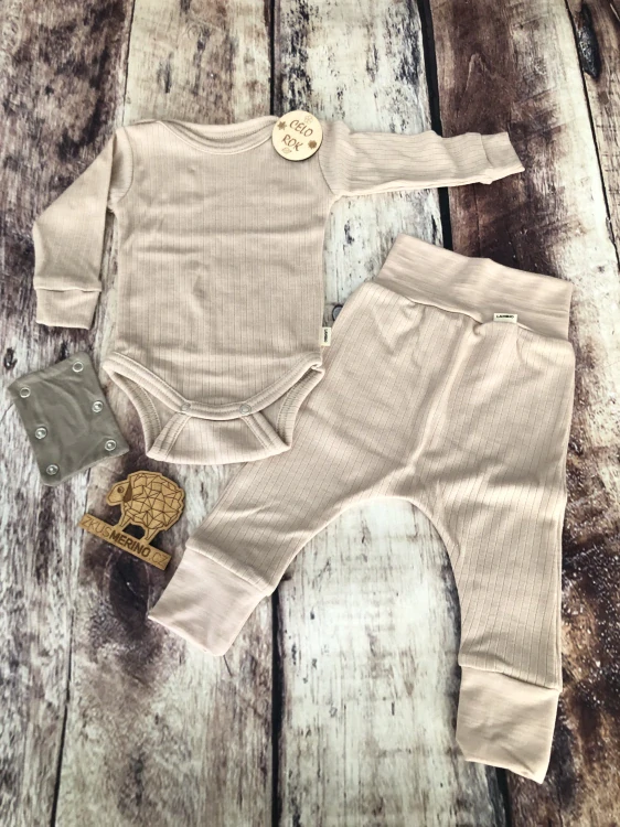 Merino komplet s dlouhým rukávem - Pískové žebro*.