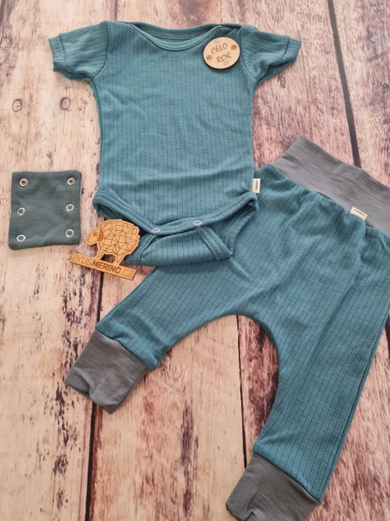 Merino komplet s krátkým rukávem - Žebro modrozelené.